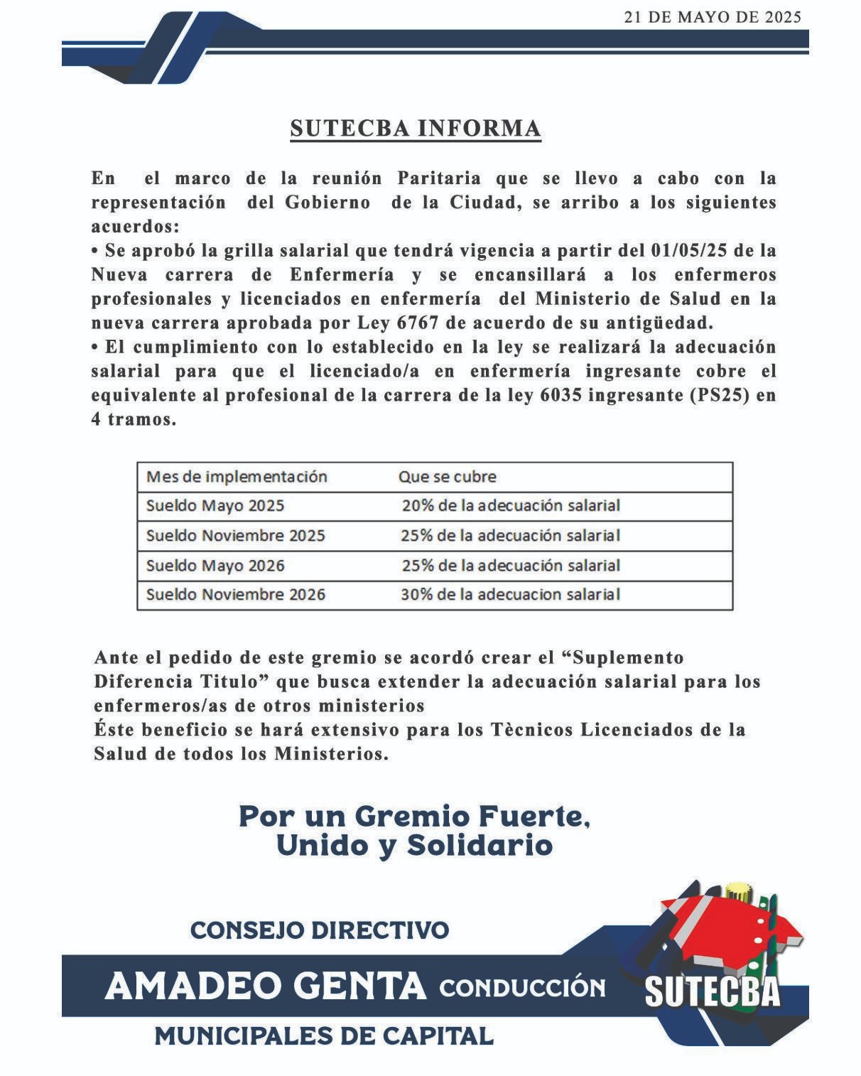 15 de mayo de 2025 SUTECBA INFORMA INCREMENTO SALARIAL